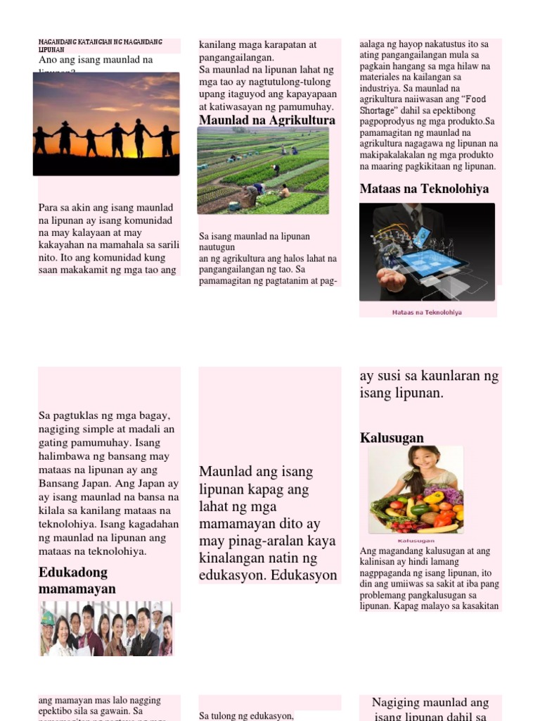 Matapos ang masusing pagkalap ng mga kailangang nararapat lamang na mas gamitin ang wikang filipino sa lahat ng transaksyon na gagawin dito sa ating bansa upang mas mapadali at magkaroon. Mga inaasam para sa mas maunlad na daigdig. Kung anong kategorya, at kung anong mga bansa ang maiuuri bilang maunlad na, ay isang paksang maaaring pagtalunan. Pagpapahalaga na nakatutylong sa paghubog ng pagigingmapanagutang tagasunod sa loob ng tahanan, paaralan at komunidad? Balitanghali is the daily noontime newscast of gma news tv anchored by raffy tima and pia arcangel. Tara na pasyalan (banatu 2015). Payak na paglalarawan ng ekonomiya na kinapapalooban ng dalwang sektor. Mga produktong hindi na kailangang iproseso upang. Contextual translation of maunlad na ekonomiya into english. Personal na binigyan ng iba't ibang ayuda ni senator christopher bong go ang mga kalesa drivers at mga kasapi ng lokal na tricycle operators and drivers associations sa laoag city, ilocos norte dahil apektado pa rin sila ng pandemya. Developed country) ay isang bansang may mataas na antas ng kaunlaran, ayon sa ilang mga kategorya o pamantayan. It airs mondays to fridays at 11:30 am (phl time). Panatilihin ang katahimikan, kaayusan at kapayapaan hindi lamang sa loob ng bansa bagkus ay sa buong teritoryo.